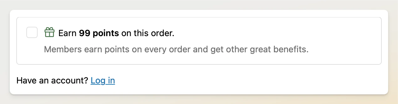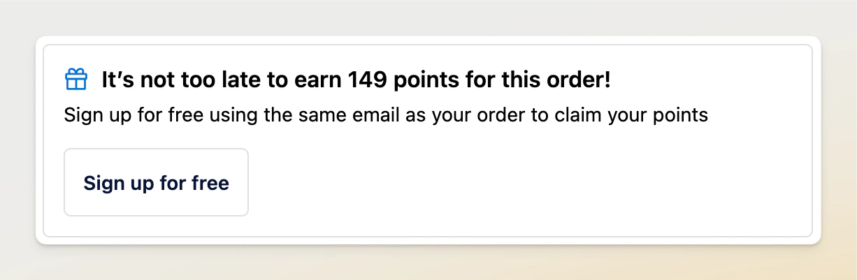 Displays the loyalty points and/or tier change that occurred or will potentially occur upon signup.
